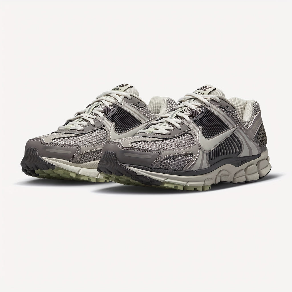 O Nike Zoom Vomero 5 ‘Cobblestone Flat Pewter’ combina o visual retrô dos anos 2000 com a tecnologia moderna da linha Zoom.